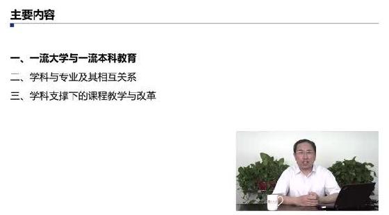本课程中,主讲人从宏观层面讲述了双一流建设当中如何开展本科教学工作。他强调,应按照“学科为体,专业为用”的理念认识学科与专业关系,形成多个学科支撑多个本科专业的资源配置架构,解决优质学科资源协同培养一流人才的问题;应按照“面向问题”培养人才的要求,课程改革的重点在于重构整个课程体系和各门课的教学内容,课程综合化是一个重要手段和现实路径。